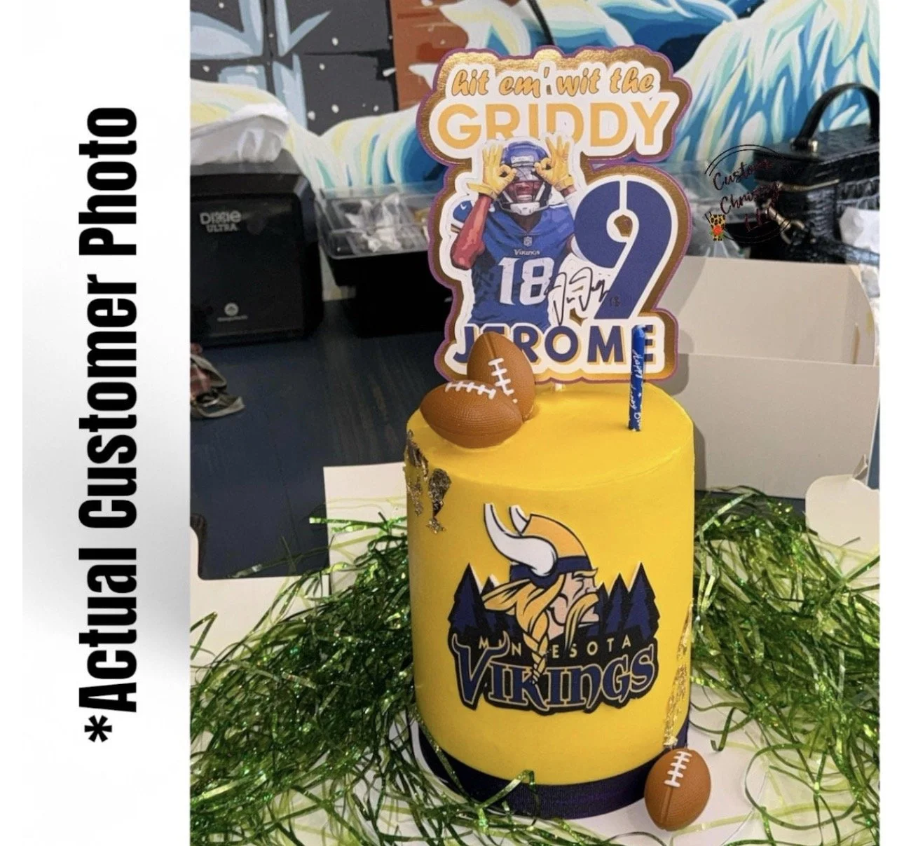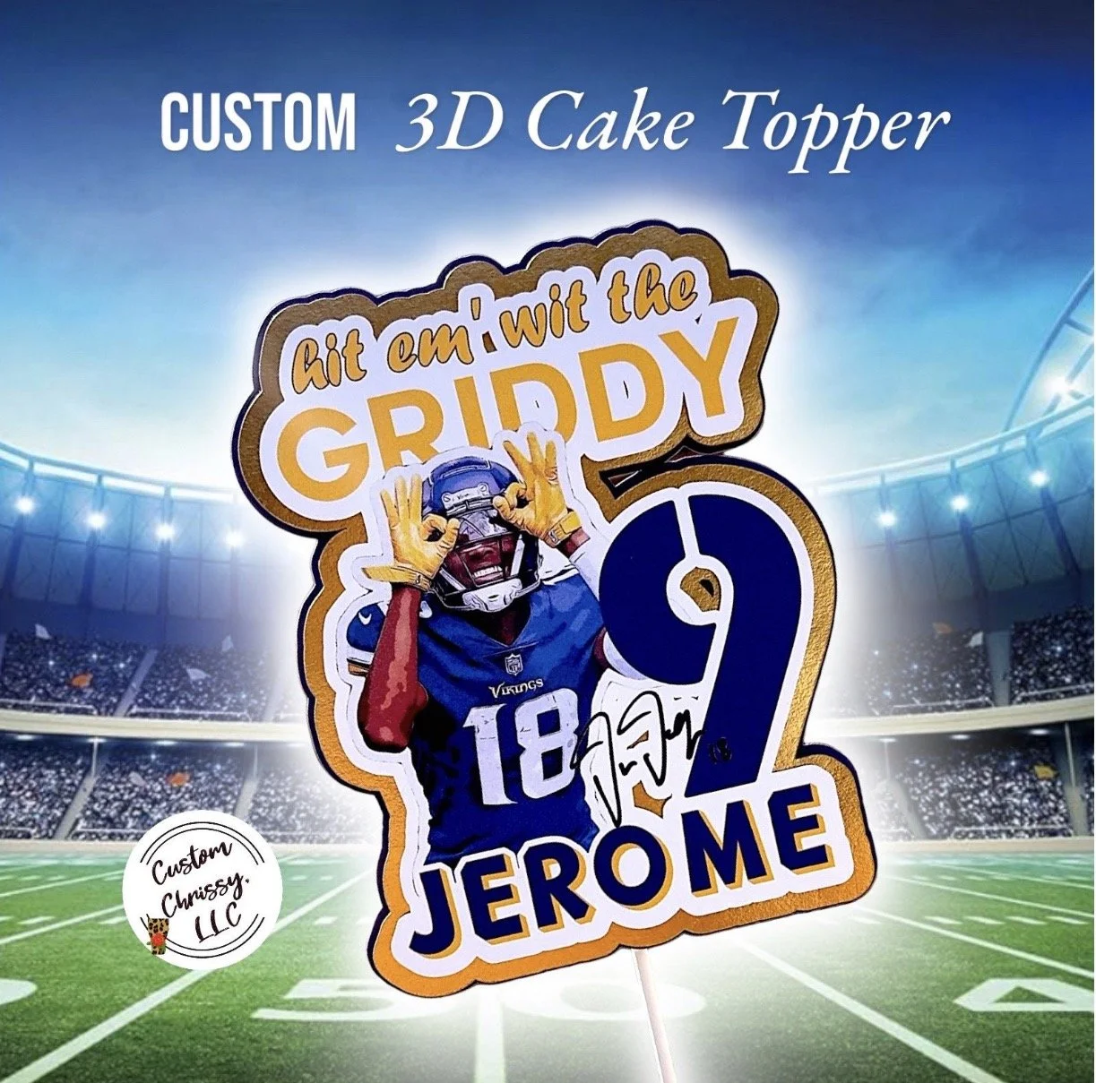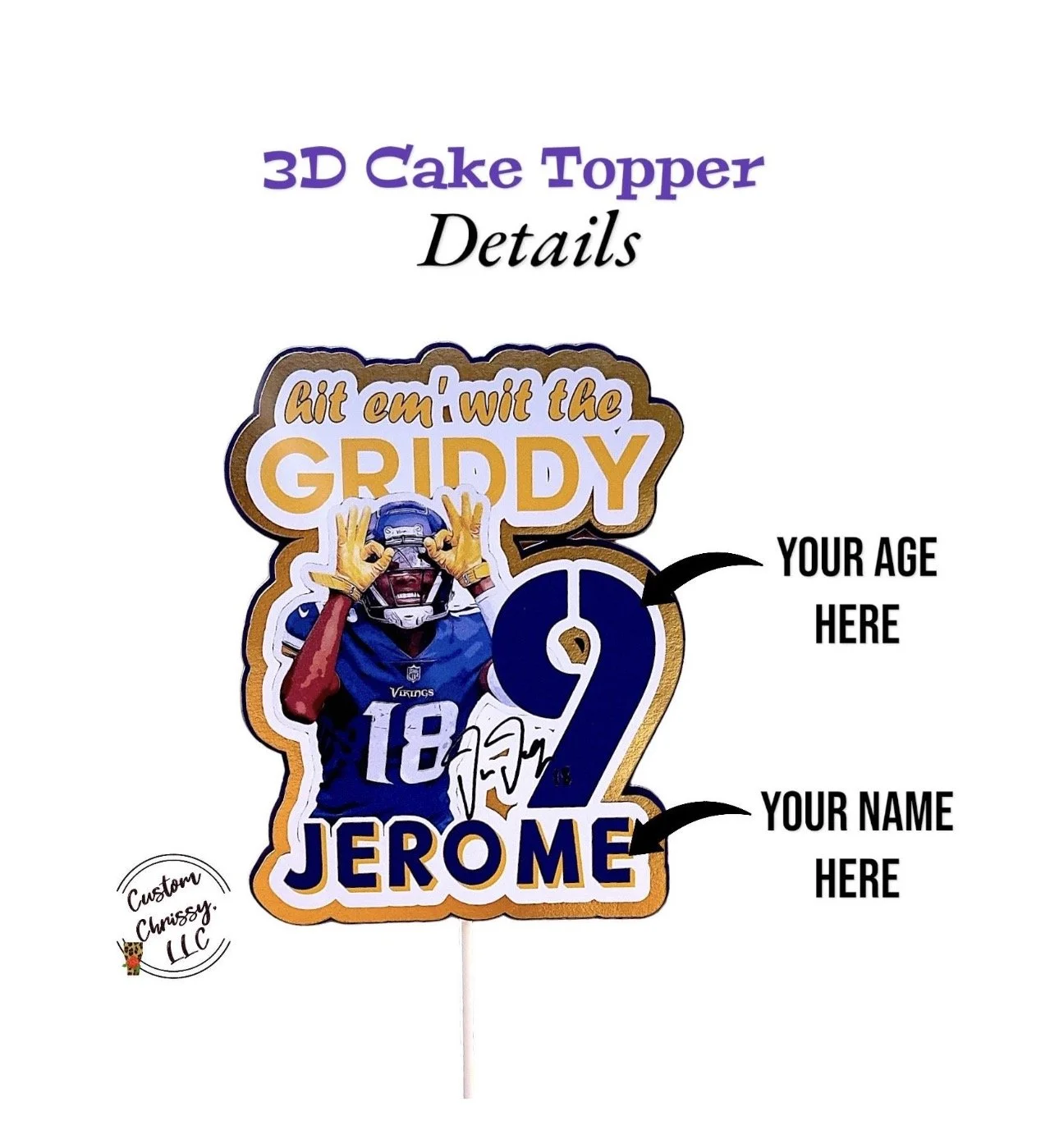 READY TO USE CAKE TOPPER. Please provide 1.) Name & 2.) AGE of Birthday Recipient in personalization section provided.